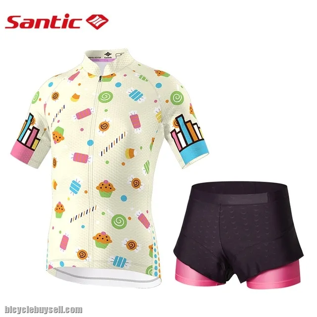 Santic Vanilla Junior Girl's Cycling Suit Kid's Bike Bicycle Jersey & 4D Padded Skirt