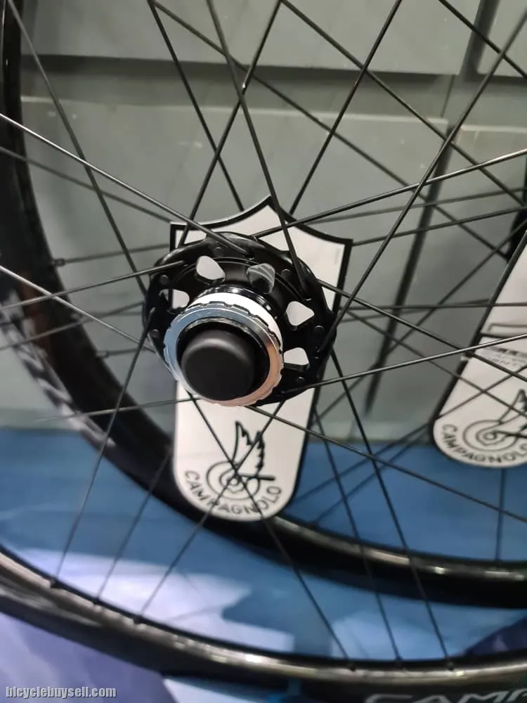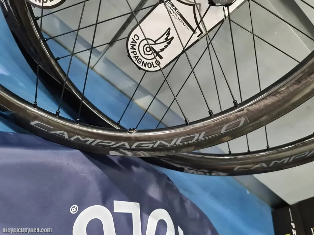 As salam As salam WTS Brand new Road Bike Wheelset 700cc Clincher wheelset Disc Version 2 way fit Brand Compagnolo Shamal Shimano and Campy Body Hub Compatible Rim depth 35mm/40mm Weight 1.4kg 100% Original Compagnolo Comes with manual book, warranty card Light & Reactive Every gram matters. The differentiated deep-section rims make the Shamal an incredibly light wheel The aluminium spokes with aerodynamic profile make the wheel extremely reactive while also making it lightweight The oversize flange on the drive side perfects torque transmission, boosting reactivity whenever the cyclist changes pace Extremely smooth rolling action USB bearings guarantee smooth rolling performance that's twice as superior to the regular bearings currently being sold on the market The carbon-fibre hub body reduces weight to a minimum and provides a high degree of lateral stiffness Elegant & Powerful The Plasma Electrolytic Oxidation finish gives these wheels a unique and distinctive total black look. The new braking rim allows reduced stopping distances even in adverse conditions The surface of the brake pad contact area offers outstanding brake modulation (Rim) Profile height: 25 mm Graphic colours: Bright Label and Dark Label Rim material: Aluminium Rim section (height/width): differentiated/22mm Graphic colours: Dark Braking rim with spiral shaped spline Plasma Electrolytic Exidation finish Hub: Carbon and Aluminium Hub USB bearings Hub edge: 100mm (front), 130mm (rear) Oversize flange Cup-and-cone bearing system Postage can be arranged within Peninsular Malaysia and Sabah Sarawak Feel free to call or WhatsApp me Din : 013-5315121 http://www.wasap.my/60135315121